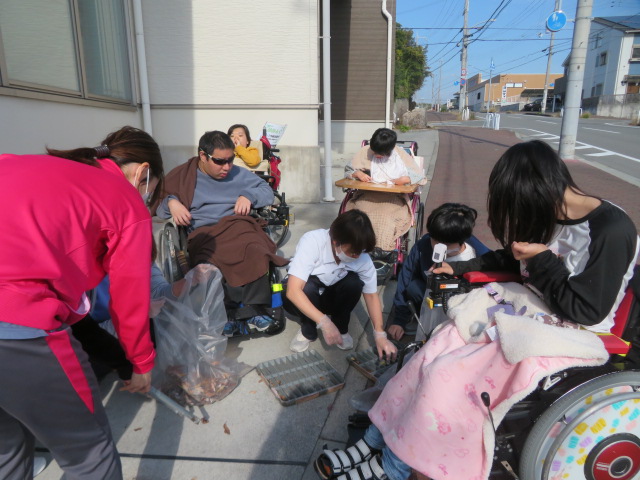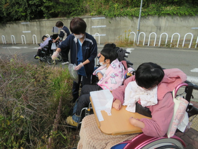 午後のひととき、はみんぐ周辺で枯葉集めやゴミ拾いを、ご利用者の皆さまと一緒に行っています。トングを使う手つきもすっかり慣れてきて、「あそこにゴミがあるよ!」と声をかけてくださる場面も。ちょっとした発見や会話が、活動を楽しくしてくれています。